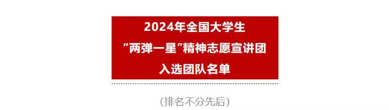 近日,大学生志愿宣讲团队入选名单已公布,我校“强国核性志愿宣奖团””队伍从全国八百多所高校的千余支队伍中脱颖而出,入选2024年全国大学生“两弹一星”精神志愿宣讲团。