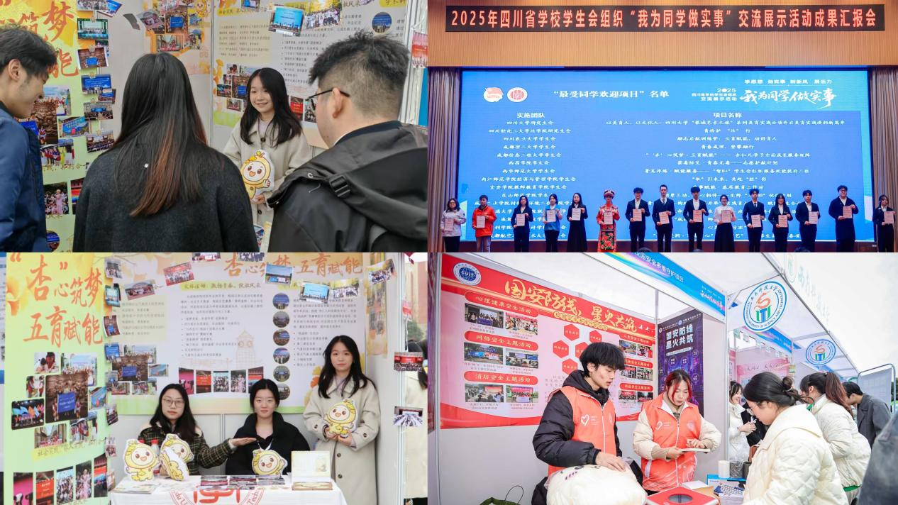12月14日至15日,2025年四川省学校学生会组织“我为同学做实事”项目交流展示活动在成都举办。经过学校初选推荐、全省初选、同学满意度调查、现场答辩展示四个环节,我校推报项目在全省214所学校381个申报项目中脱颖而出。学校学生会“‘杏’心筑梦·五育赋能”——杏仁儿学子全面成长服务矩阵项目,经学生观察团和大众评审团综合评议,荣获四川省学生会服务同学“最受同学欢迎项目”(全省共30项)。该项目与网络空间安全学院学生会“国安防线,星火共筑”校园安全多维守护项目,也双双入选四川省学生会组织服务同学“百佳项目”(全省共100项)。三项荣誉的取得,集中彰显了我校服务育人的扎实成效。