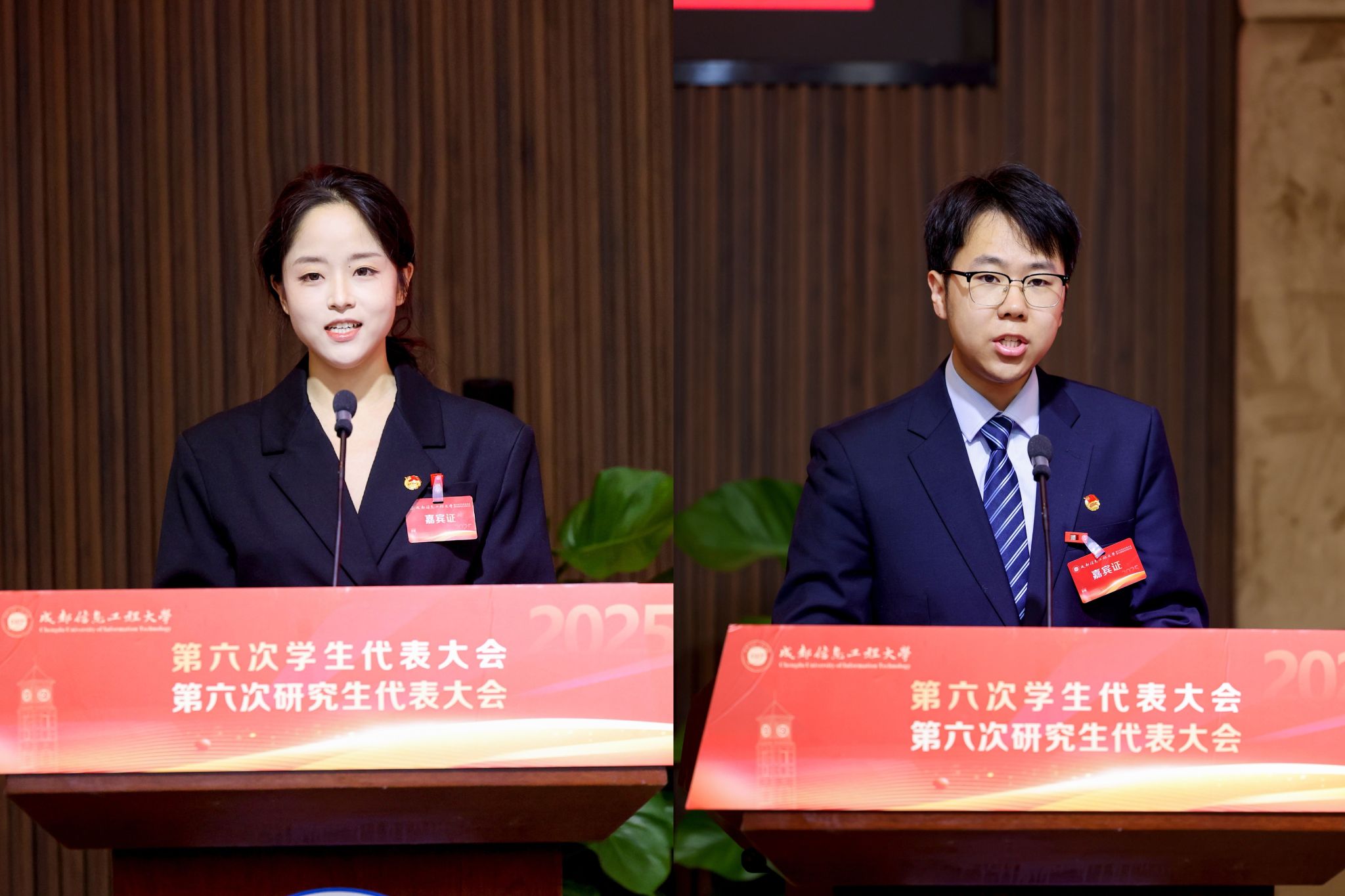 大会严格按照民主程序,以无记名投票方式,差额选举产生了成都信息工程大学第六届学生委员会委员、研究生会委员会委员,以及新一届学生会、研究生会主席团成员。宋增玥、赵奕涵、杨茜茜、王浩天、杨婉婷为第六届学生会主席团成员,邓浩田、李虹雨、罗婷、温鑫、薛玲玲为第六届研究生会主席团成员;校团委副书记尹欣被聘任为第六届学生会秘书长,校团委副书记姜宇忠被聘任为研究生会秘书长。