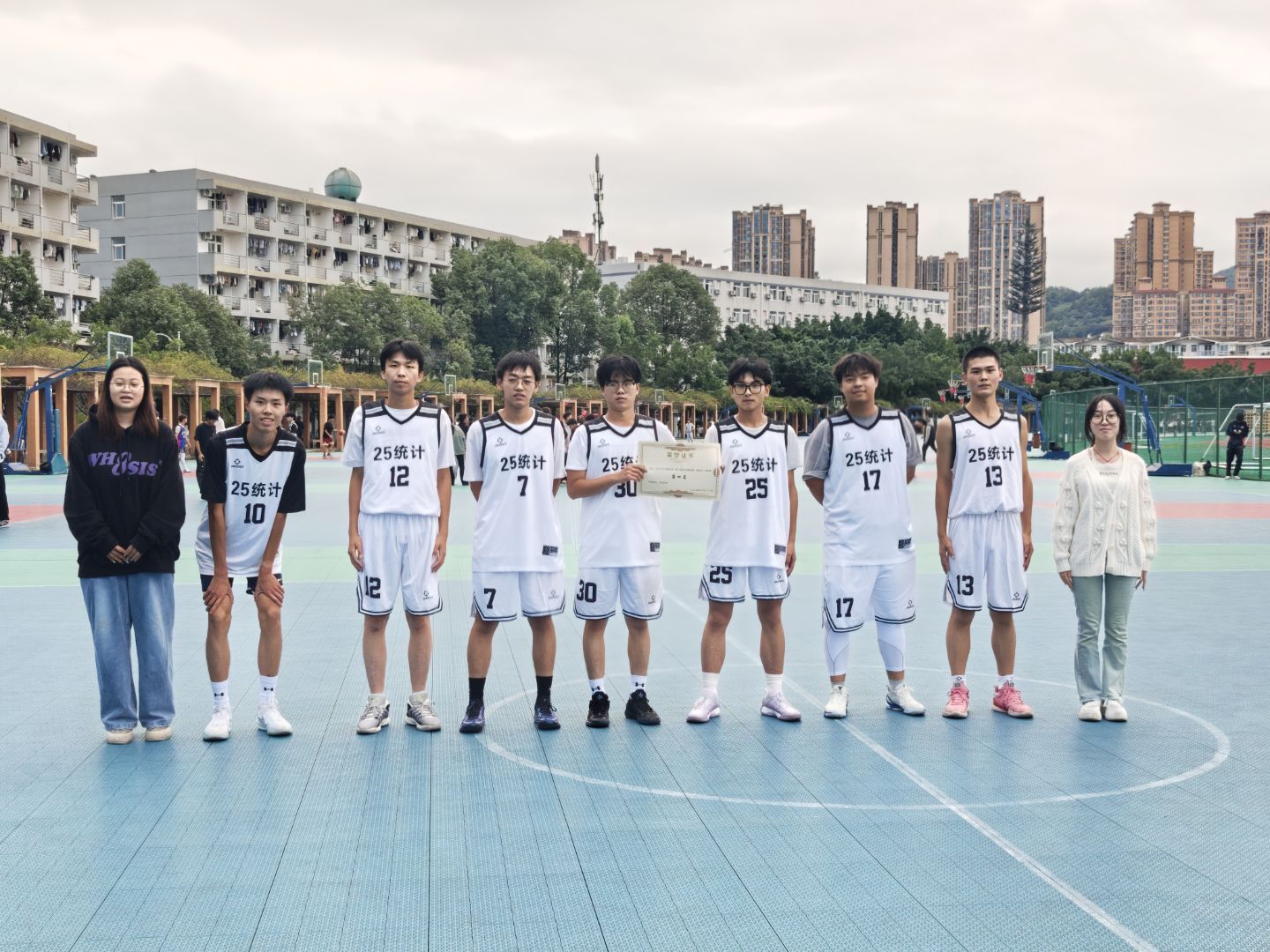 冠军之争更是悬念拉满,2024级统计专业队与2023级金工专业队展开强强对话,半场比分紧咬不放,第三节2024级统计专业队突然发力,高强度防守下连续抢断反击,一举拉开分差,末节顶住对手反扑压力,以73:60力克强敌,成功加冕冠军,用青春风暴席卷赛场!